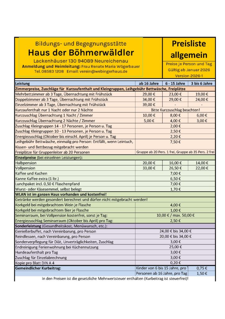– 50 % Ausfallgebühr des Gesamtpreises bei einer Stornierung ab 3 bis 2 Wochen vor der Belegung
