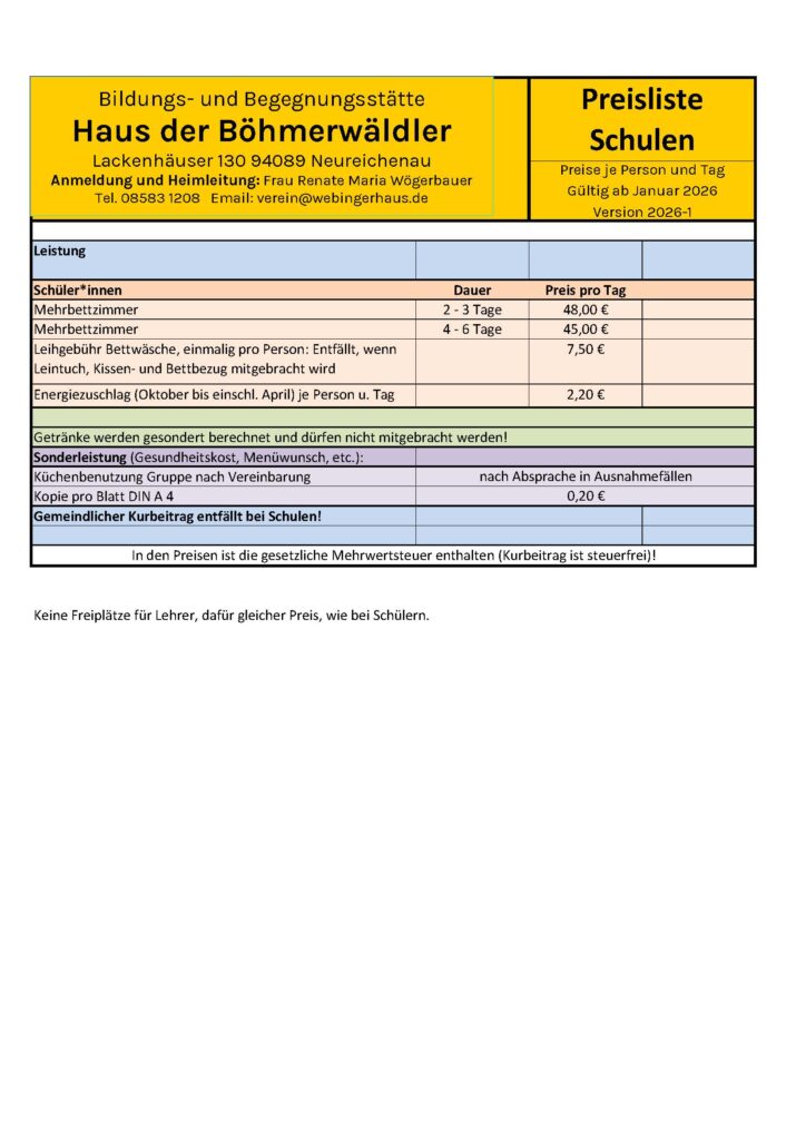 – kostenlose Stornierung bis zu 5 Wochen vor der Belegung